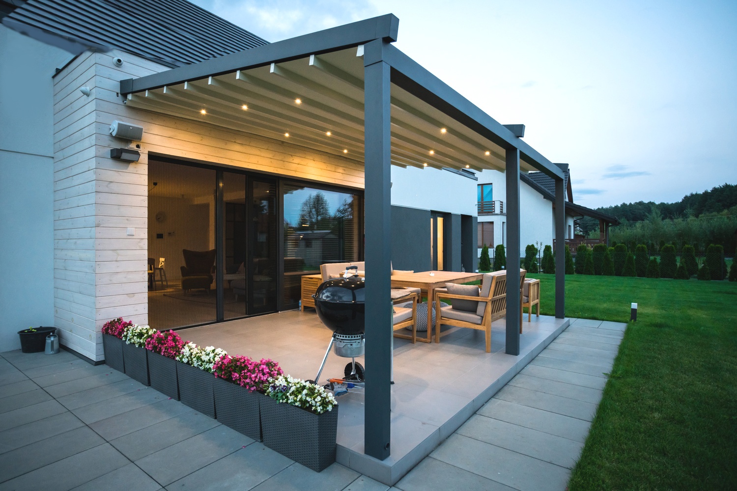 Pergola lamelowa to nowoczesne rozwiązanie na zadaszenie tarasu , jednocześnie niezwykle funkcjonalne , które może znaleźć się na tarasie bądź na wydzielonej powierzchni ogrodu w zależności od potrzeb i pomysłu użytkownika. Konstrukcja wykonana z ekstrudowanego aluminium przez co jest trwała i wytrzymała, połączenia bez widocznych śrub i szczelin.