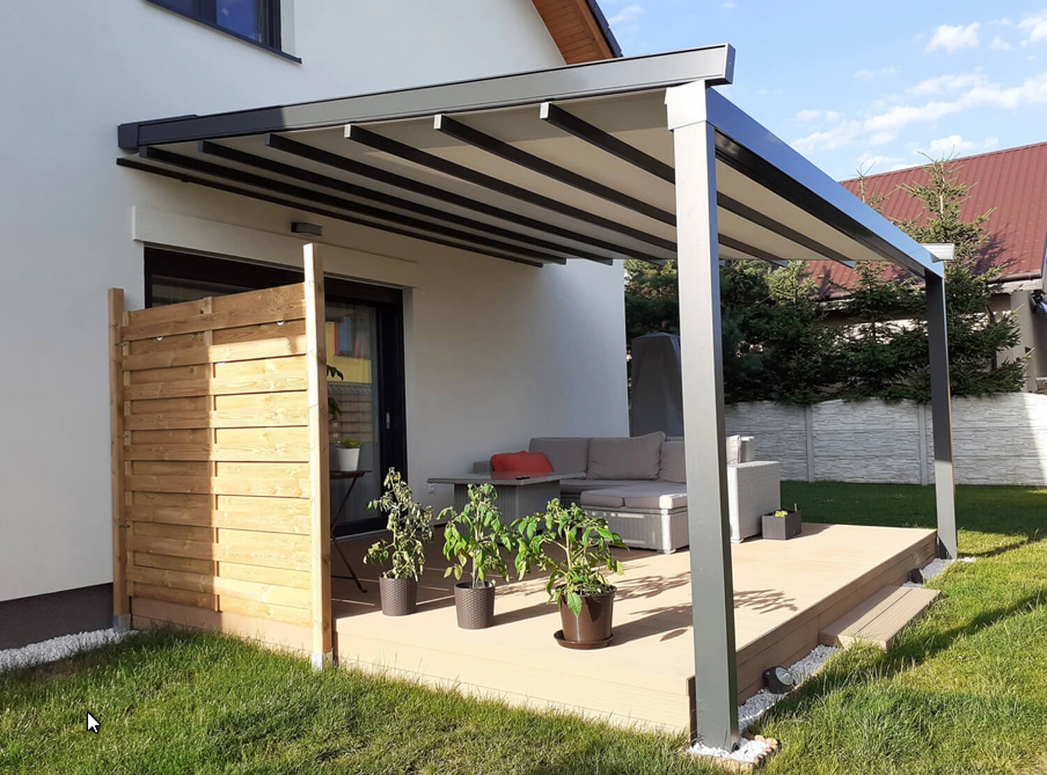 Estetyka wykonania oraz niewidoczne połączenia śrubowe sprawia że ta pergola przewyższa wyglądem i jakością inne produkty na zadaszenie tarasu.